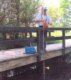 • Alec AEM1-D mätaren har en mycket kraftig, elektromagnetisk, sensor och olika upphängningsanordningar. Inb. datalogger samt RS232 datautgång gör att man alternativt även kan använda detta instrument för stationär mätning under kostare tider. Inställning, nerladdning o presentation via Windows program. Inkl std fäste och 1,2 meters (3-delat) graderat handtag. 10 meter kabel som std, mera som tillval. För arbeten från broar etc finns ett speciellt fäste med vikt och styrvinge samt wire, (tillval). Passande för såväl naturliga som artificiella vattendrag.