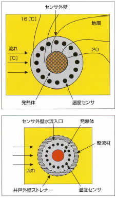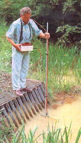 • Underground Water Flow Meter mod GFD3, från Alec, är en flödesmätare speciellt utvecklad för att mäta de mycket långsamma grundvattenflödena i borrhål och liknande. Går ner i ett 40 mm hål. Mäter hastighet 0,01 .. 1,0 cm/min och även riktning 0 .. 360 grader. Mätprincipen är att man mäter avkylningseffekten på 16 st temperetursensorer, vilka är uppvärmda till känd temperetur, som sitter som en krans runt instrumentets nedersta del. Med RS232 utgång, avläsning sker per PC.