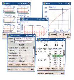 • Hydro-Bios RHCM (Rod Held Current Meter) är en rätt så ny mätare med mekanisk rotor och elektroniskt fjärr-räkneverk. Avläsning sker i realtid medelst ett avläsningsinstrument typ "räknedosa" som visar farten direkt i t.ex m/sek. Avläsaren har även inbyggt minne för ganska många avläsningar. Instrumentet levereras helt komplett med teleskophandtag, olika längder 220 - 450 cm, avläsningsdosa samt program för avläsning av minne till PC. Tryck (på bilden) för info.